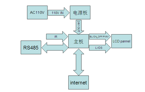 产品采用级联的以太网通信方式,配合485或CAN总线将各种视频、图片、及用户数据传输或下载到LCD动态地图显示器。通过接收车载PIS系统(旅客信息服务系统)中央控制器控制指令,完成显示预报站、到站、车站信息、播放视频,及动态文字显示。
